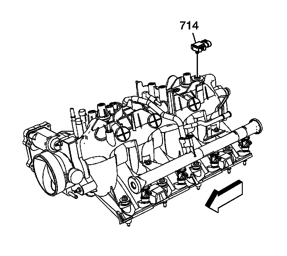 5. Install the manifold absolute pressure (MAP) sensor (714), if previously removed.The electrical connector end of the sensor should be facing the front of the engine.