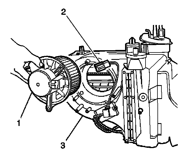3. Install the blower motor (1) to the HVAC module (3).