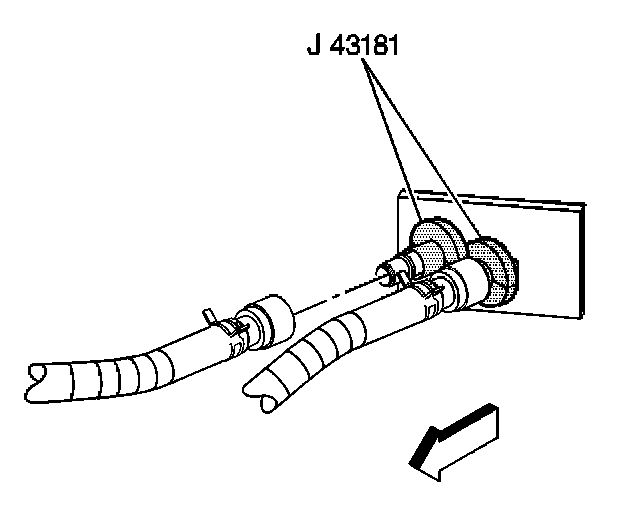 4. Using the J 43181 disconnect the heater hose from the heater core outlet.