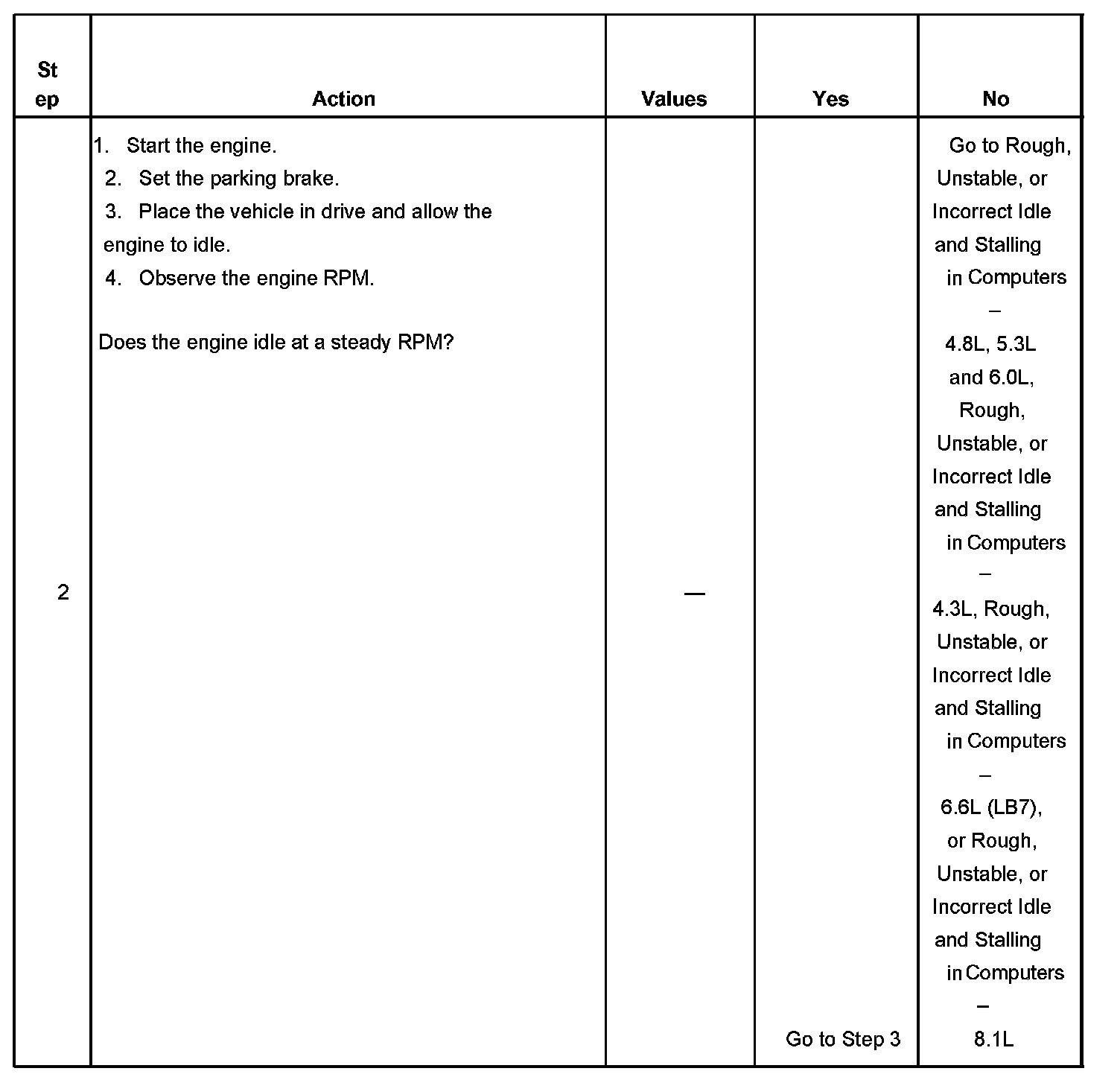 The numbers below refer to the step numbers on the diagnostic table.