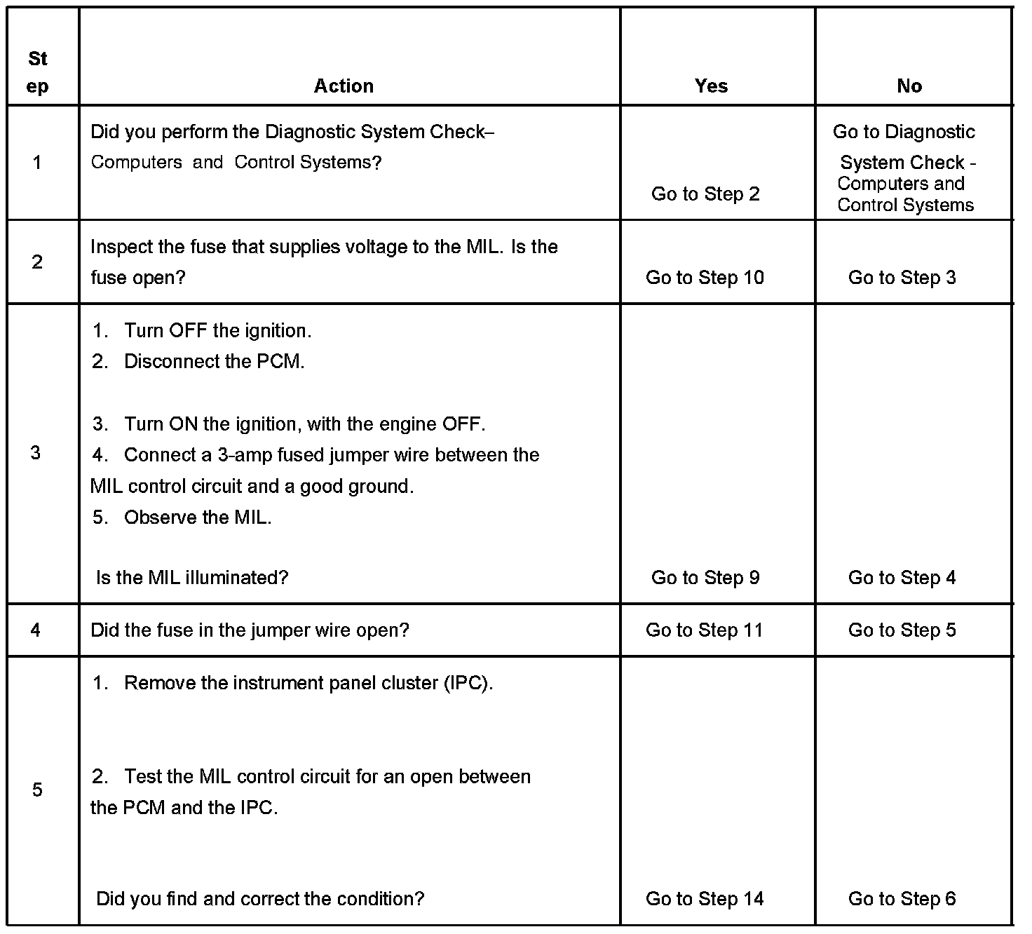 3. This step determines if the condition is with the MIL control circuit or the PCM.
