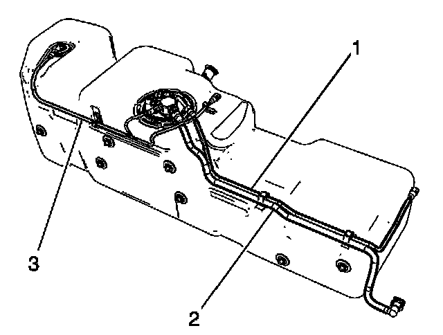 3. Disconnect and remove the EVAP line (3) from the sending unit and retaining clips.