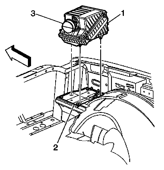 3. Pull up on the air cleaner assembly (1) in order to release the retainers from the air cleaner adaptor (2).