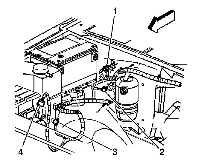 2. Disconnect the mass air flow/intake air temperature (MAF/IAT) sensor electrical connector (4).