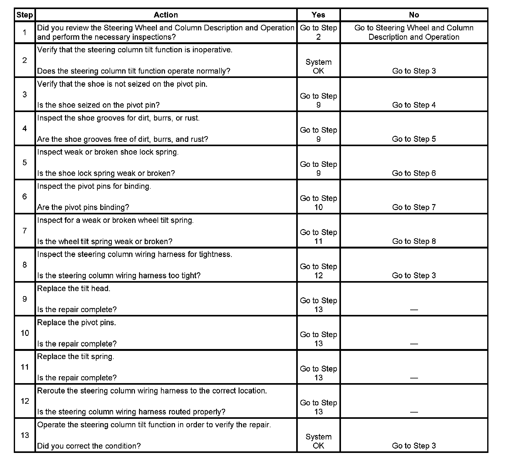 Steering Column Tilt Function Inoperative