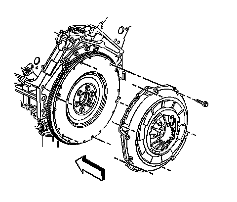 7. If equipped with a 6.6L or 8.1L engine, remove the clutch pressure plate bolts.