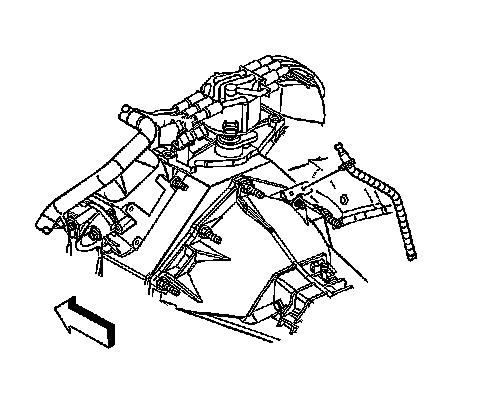 11. If equipped with 4WD, remove the vent hose clip (1) from the fuel feed/return hose bracket.