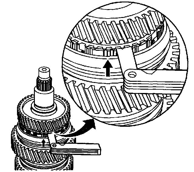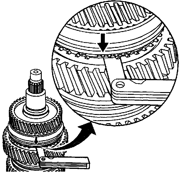 8.3. Insert the feeler gage between the synchronizer hub and the blocker ring to measure the wear gap.