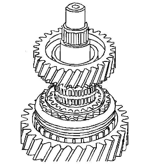 Important: For installation alignment scribe an alignment mark on the synchronizer hubs and synchronizer sleeves before removing. To prevent the synchronizer springs and struts from being lost, do not separate the synchronizer hubs from the synchronizer sleeves. Keep the synchronizer clutch gear and the blocking rings with the synchronizer hubs. Organize the components in order to install the components in their original location and position.