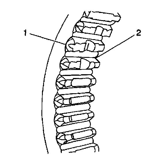 12. Inspect the synchronizer sleeve teeth (1) for the following, which may cause shift conditions: