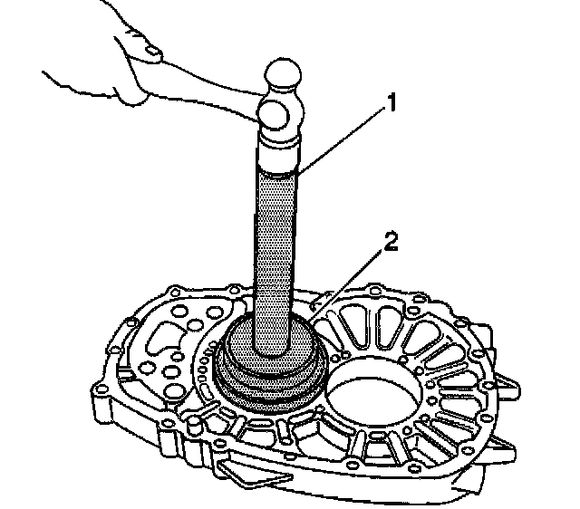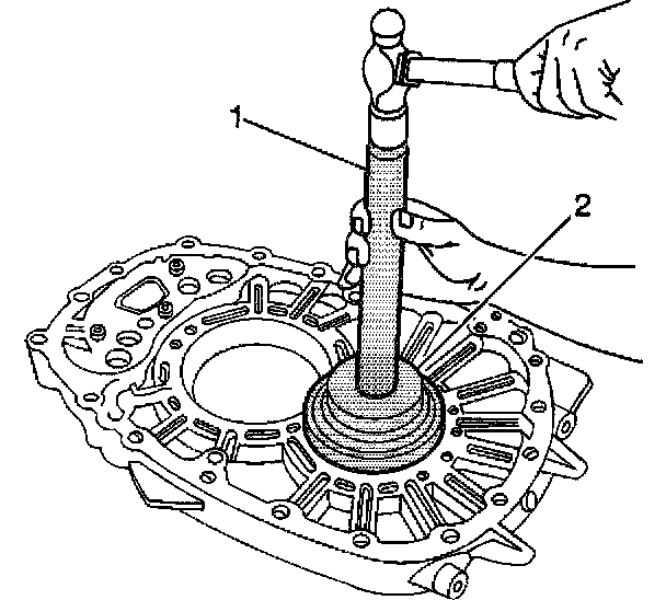 2. Install the countershaft bearing race in the intermediate case using the J 8092 (1) and the J 44745 (2).