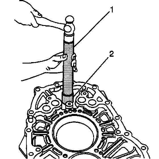 4. Install the shift rail bearing in the intermediate case using the J 8092 (1) and the J 44741 (2).