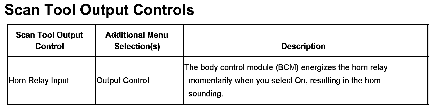 Scan Tool Output Controls: