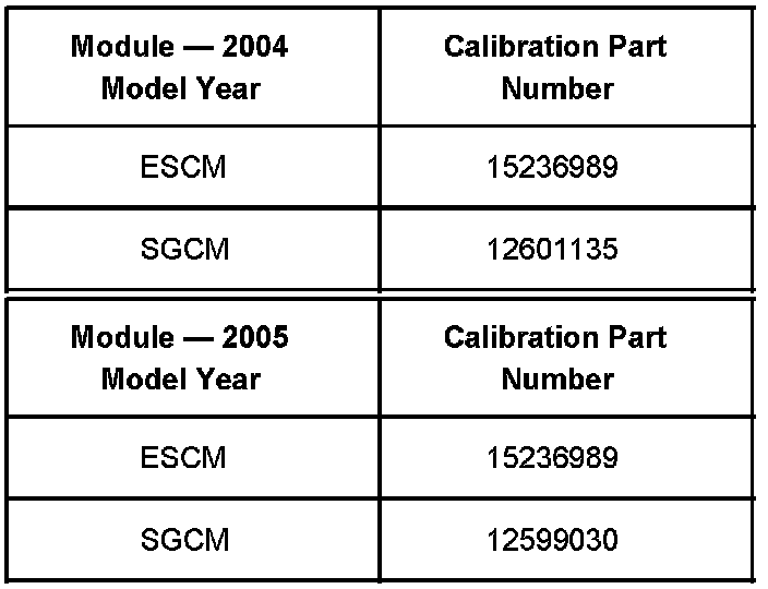 2. If the ESCM and/or SGCM do not have the latest software, use the Tech 2(R) SPS function to update the module(s) and clear all DTCs. The latest software is available on TIS version 4.5, broadcast to dealers in April, 2005.