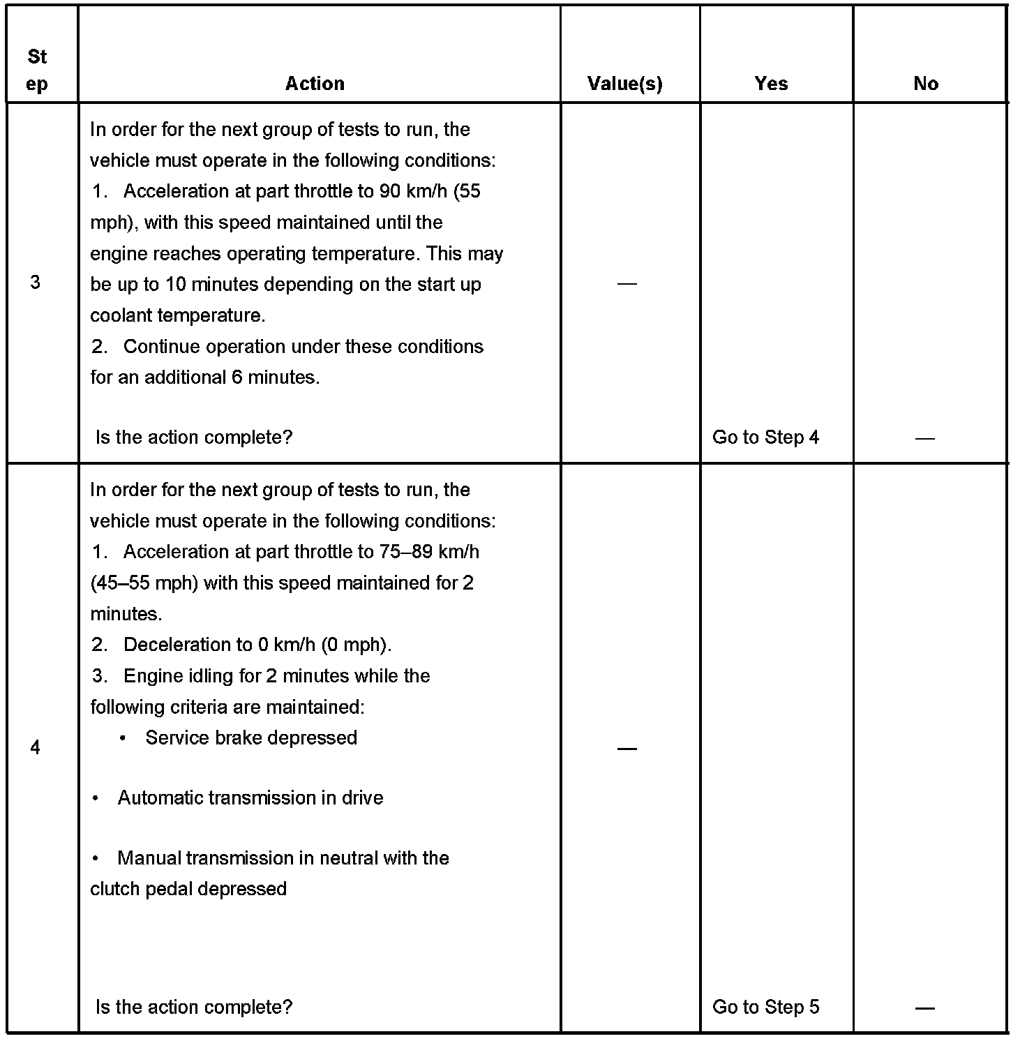 4. This step is to run the Catalyst Tests. This test runs during the idle period immediately following a cruise period that meets a minimum calibrated RPM and time period.