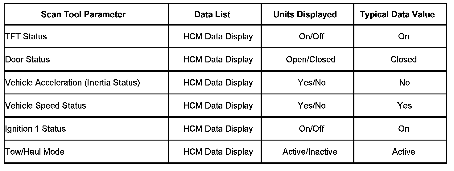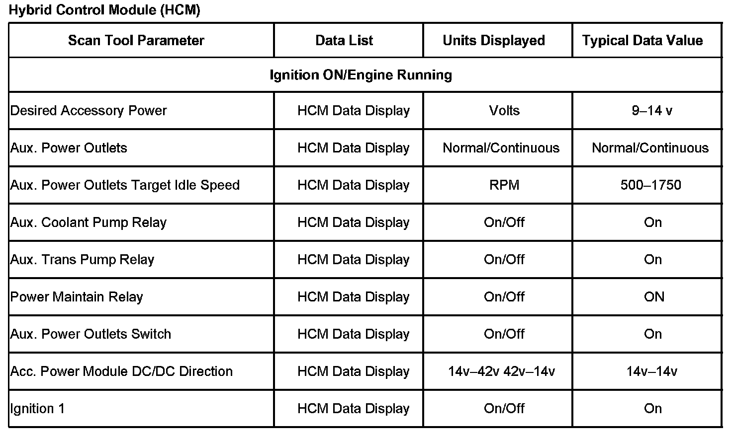 Normal Scan Tool Data Values - Hybrid Control Module (HCM)
