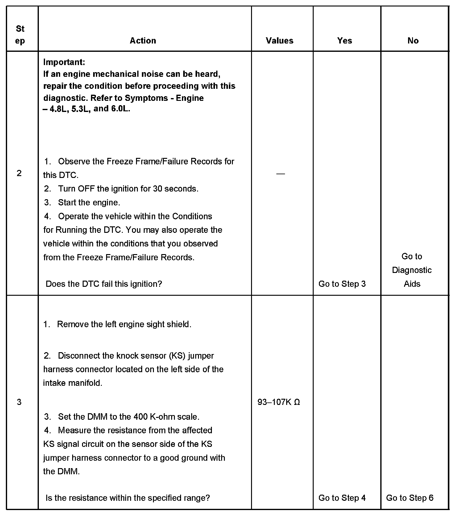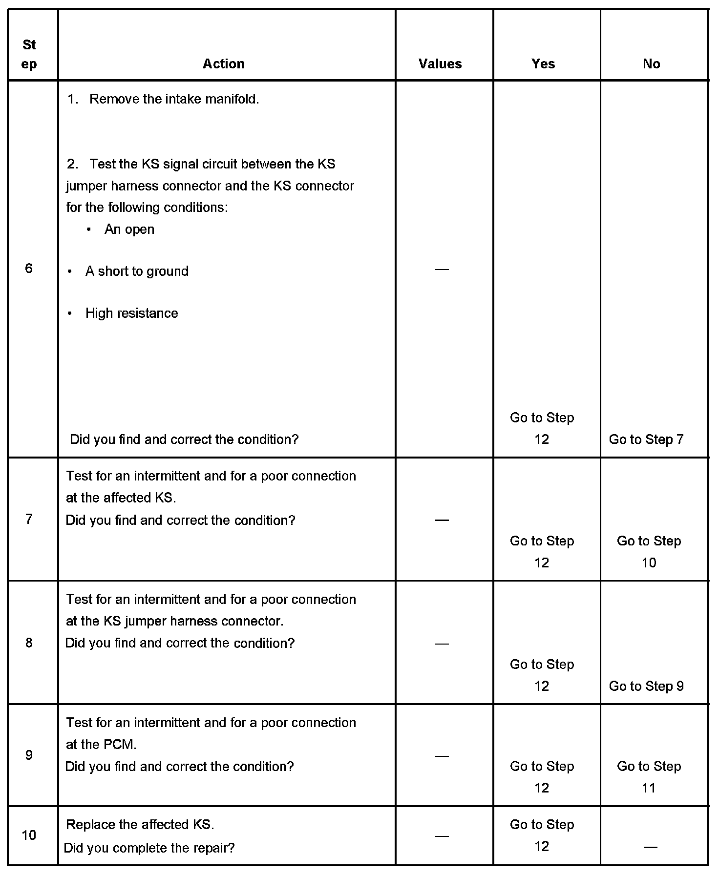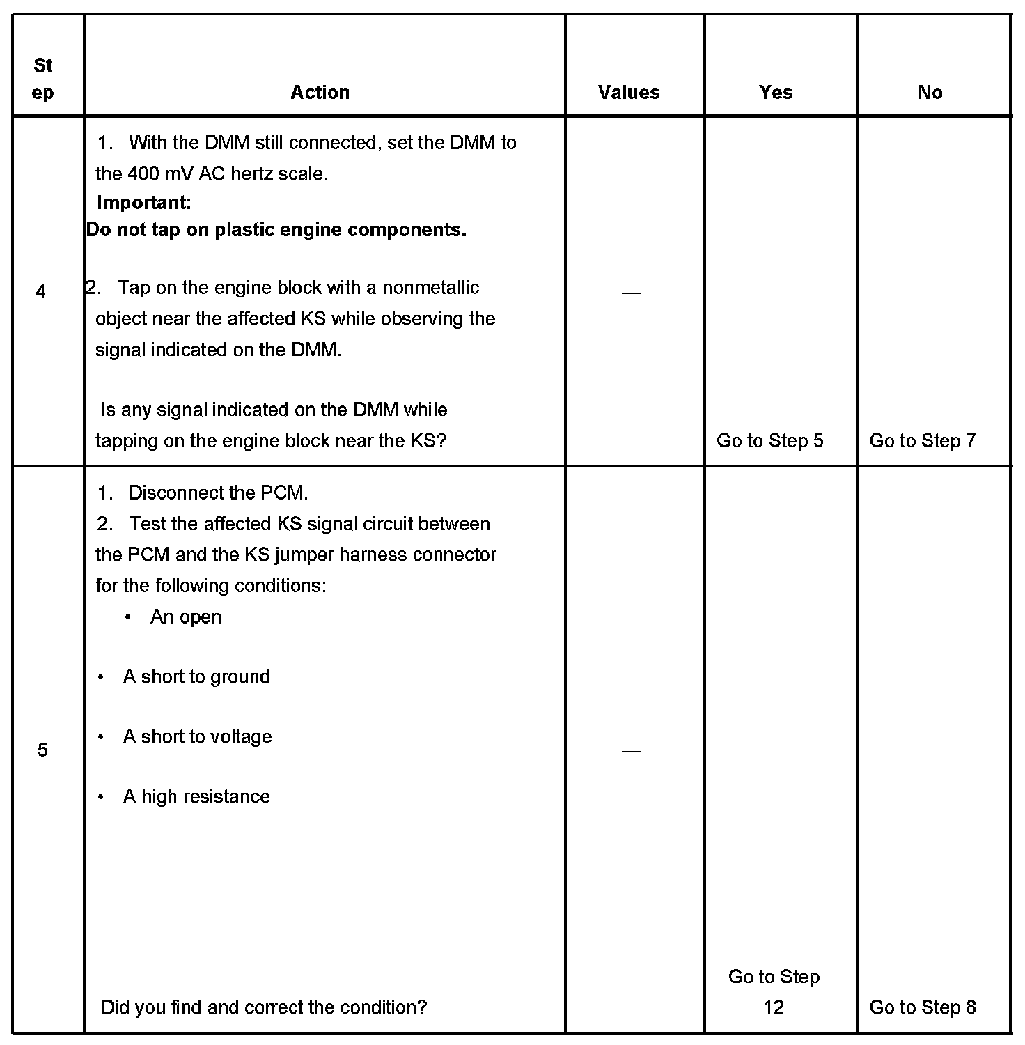 - The PCM detects that the KS signal is within the calculated voltage range or the KS signal is not present.