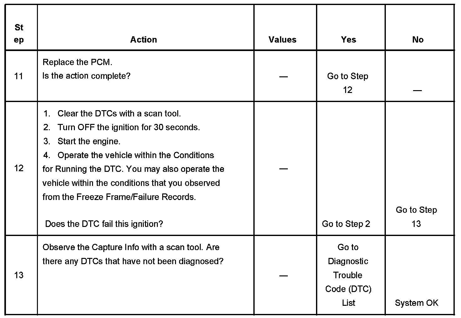 - A current DTC, Last Test Failed, clears when the diagnostic runs and passes.