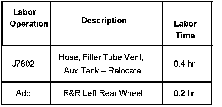 2. Depending on the body upfitter, it may be necessary to remove the left rear tire/wheel assemblies in order to gain access to the auxiliary tank balance hose.