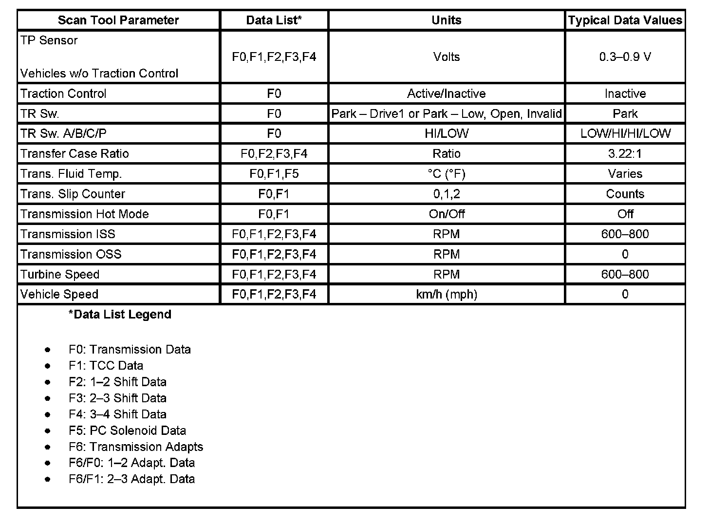 Transmission Scan Tool Data ListUse the Scan Tool Data List under the following conditions: