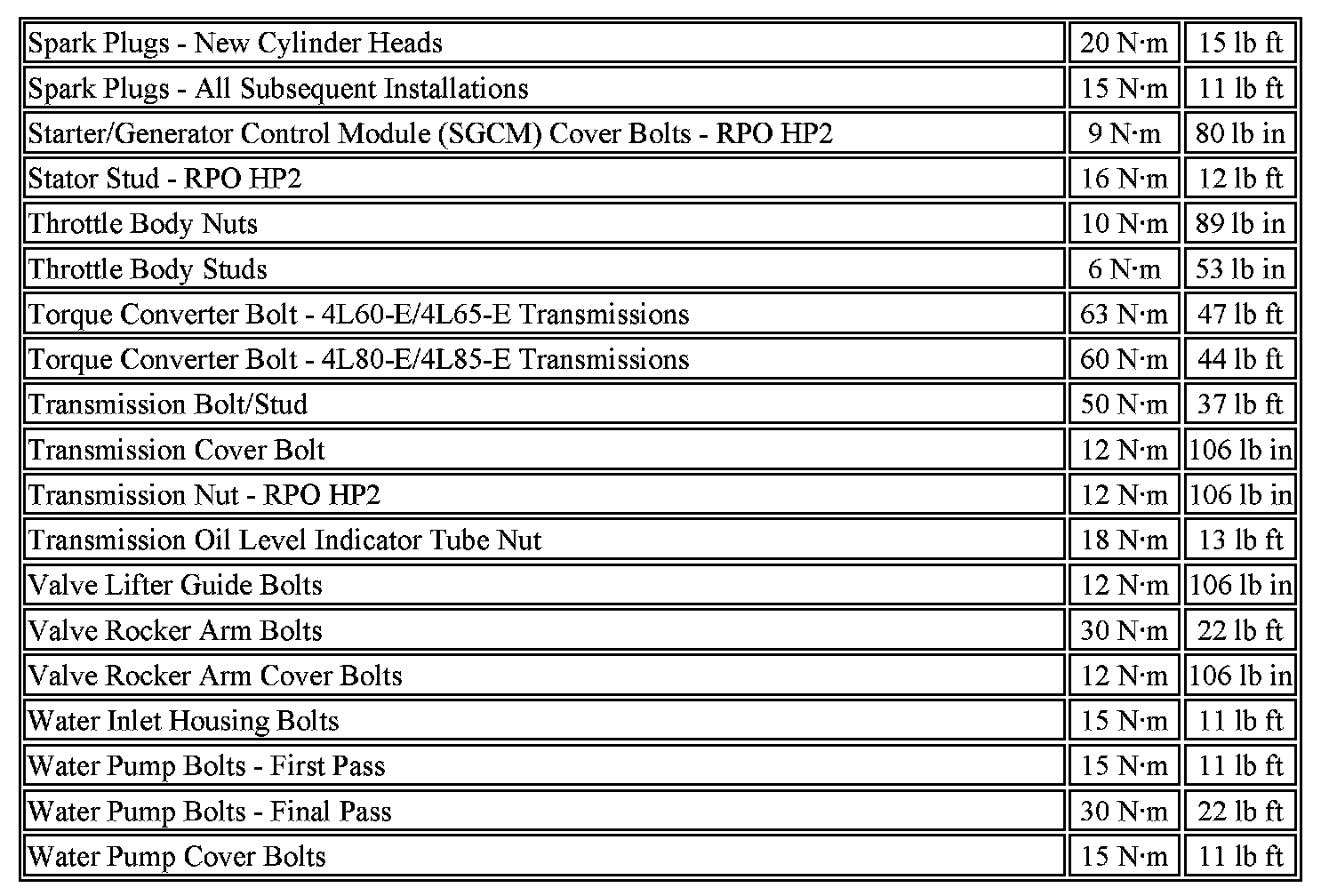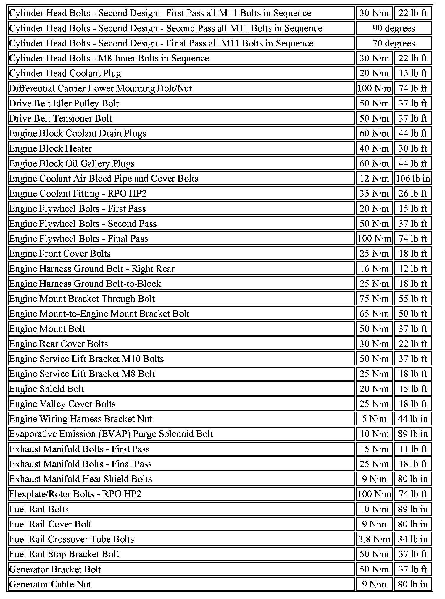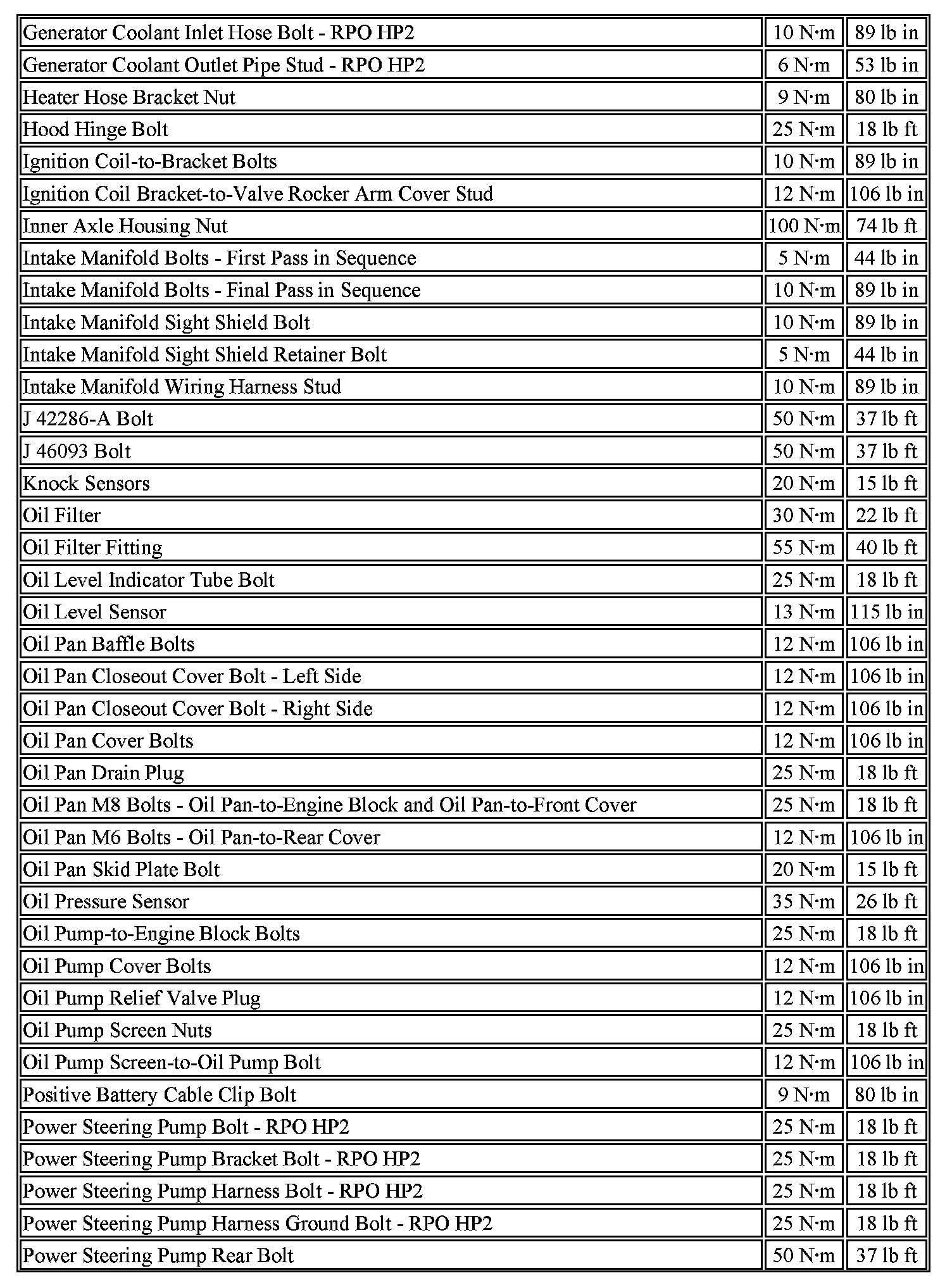 Fastener Tightening Specifications