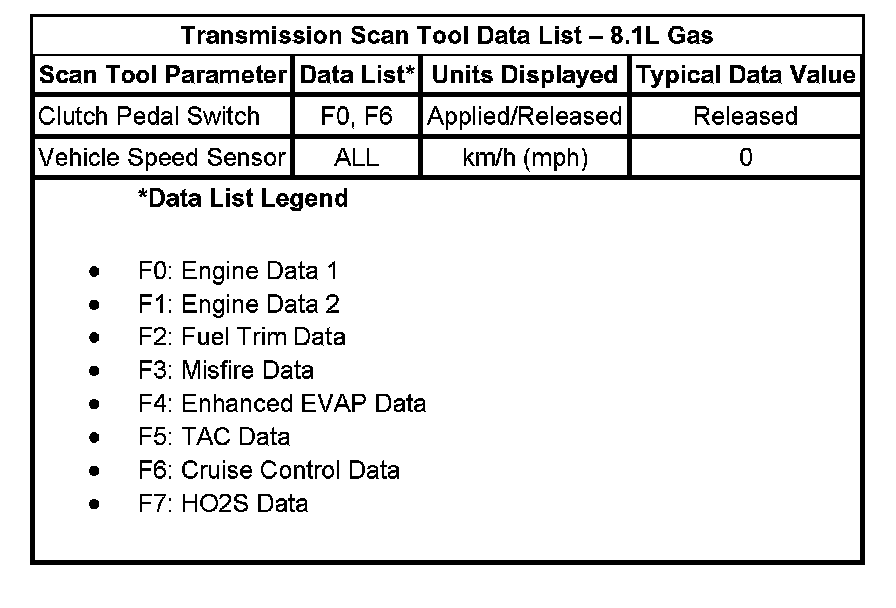 Transmission Scan Tool Data List - 8.1L Gas