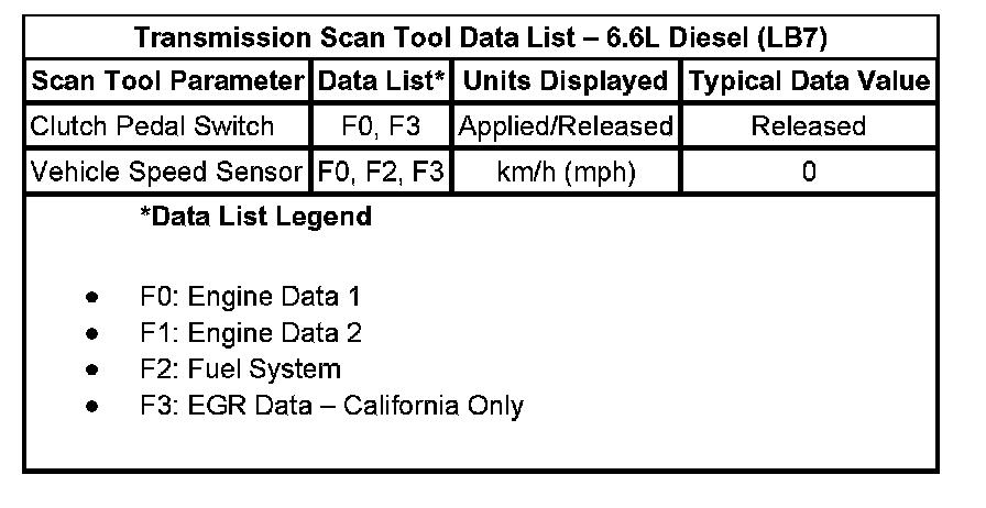 Transmission Scan Tool Data List - 6.6L Diesel (LB7)