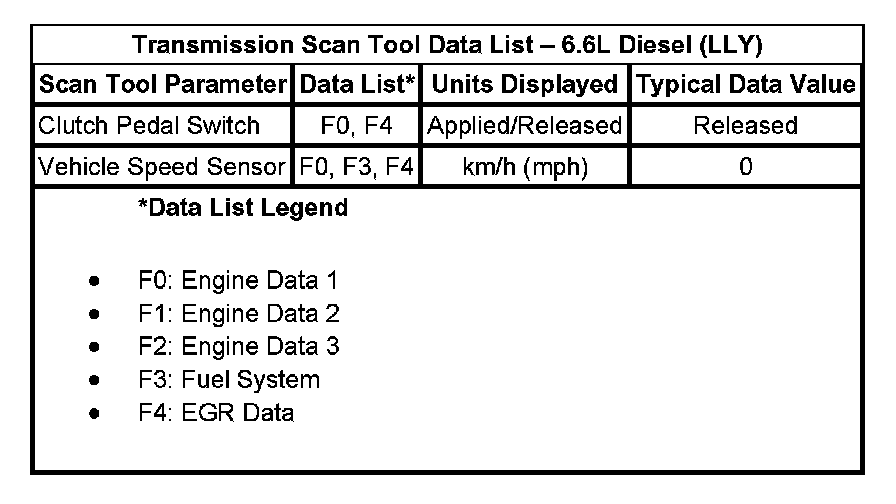 Transmission Scan Tool Data List - 6.6L Diesel (LLY)
