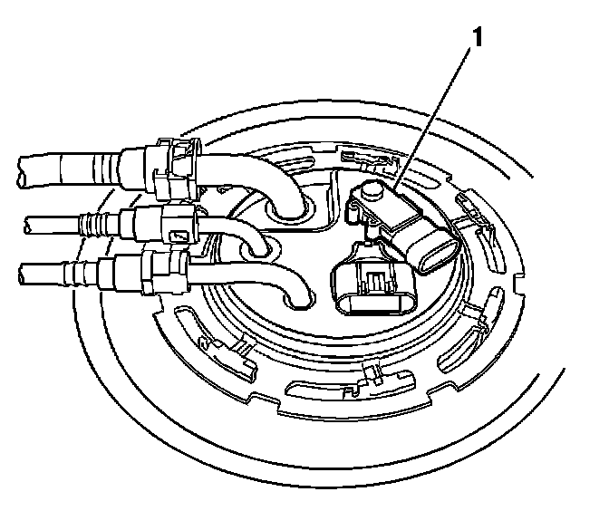 2. Using a slight rocking motion, while pulling straight up, remove the fuel tank pressure sensor (1).