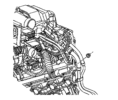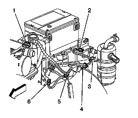 6. Remove the engine wire harness clip from the accumulator (3).