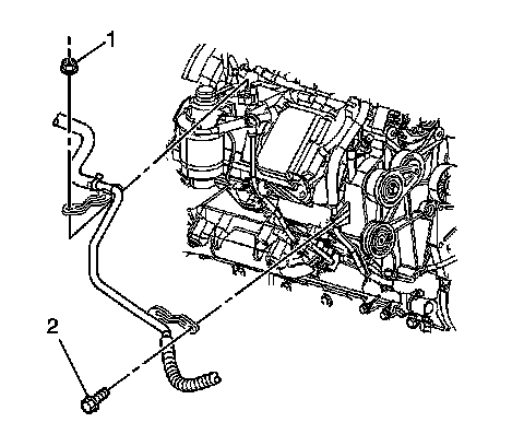 23. Remove the outlet heater hose pipe bolt (2).