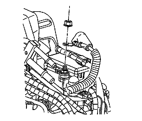 14. If equipped with an automatic transmission, install the nuts retaining the transmission fluid fill tube bracket.
