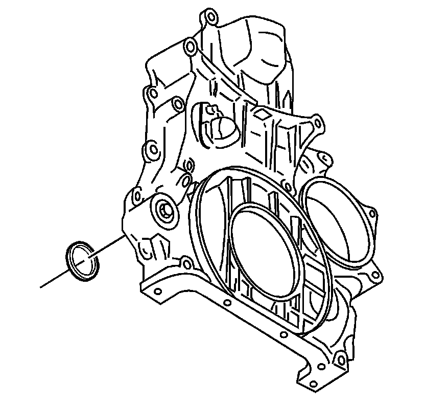 2. Apply a 2-3 mm (1/8 inch) wide by 0.5-1.5 mm (1/16 inch) high, bead of sealant GM P/N 97720043 (Canadian P/N 88901148), or equivalent to the engine front cover sealing surface to the engine block.