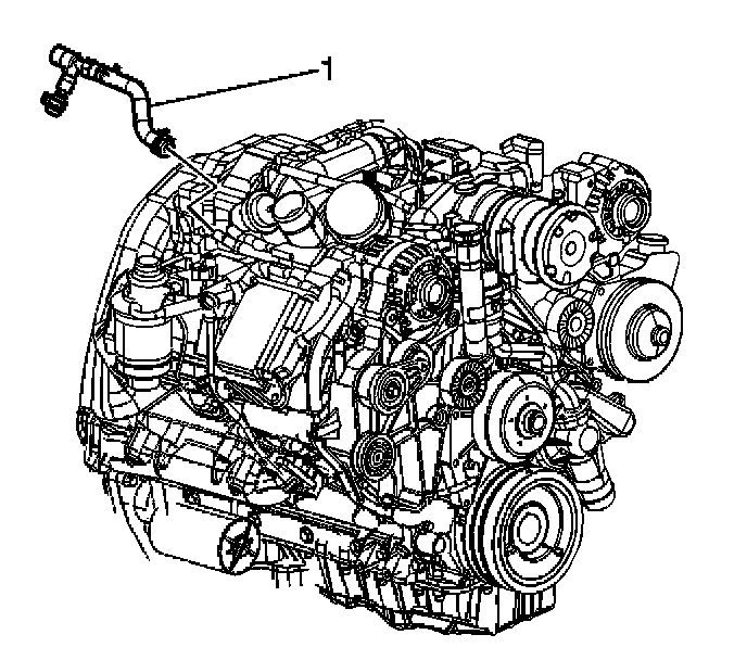 6. Remove the inlet heater hose (1) from the engine coolant outlet.
