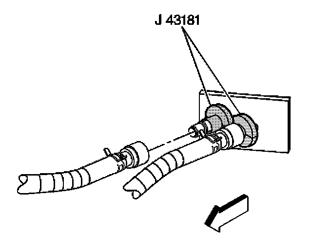 4. Using the J 43181 disconnect the heater hose from the heater core outlet.