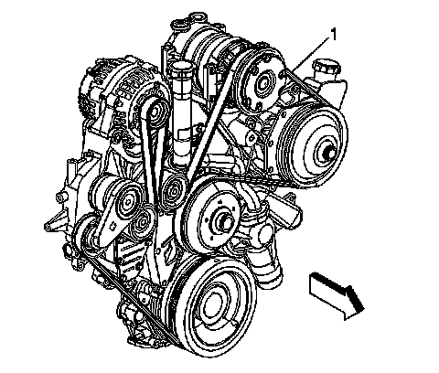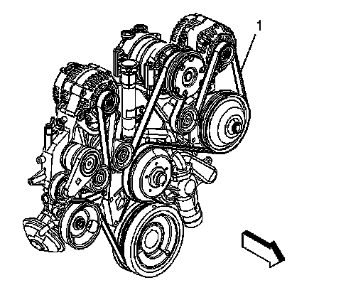 3. Install the drive belt (1) to the drive pulleys, if equipped with a single generator and vacuum pump (California emissions).
