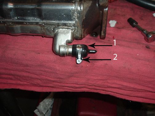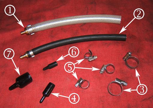 5. Install the Cap Plug(s) (1) and tighten the clamp(s) (2) on the EGR cooler hose barb(s) as shown.