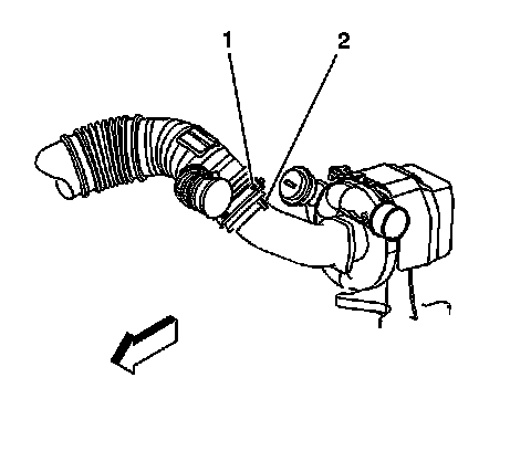 4. If removing the right side hose, loosen the outlet duct clamps at the turbocharger and the mass air flow/intake air temperature (MAF/IAT) sensor.