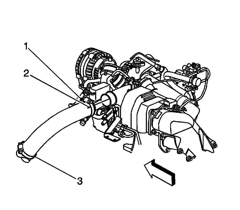 1. Loosen the outlet duct clamp at the upper intake manifold cover.
