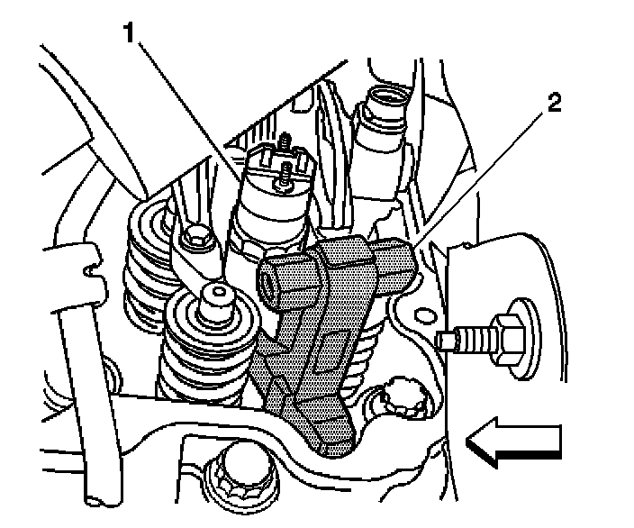 5. Install a wrench onto J 44639 (2) and pry away from the fuel injector (1).