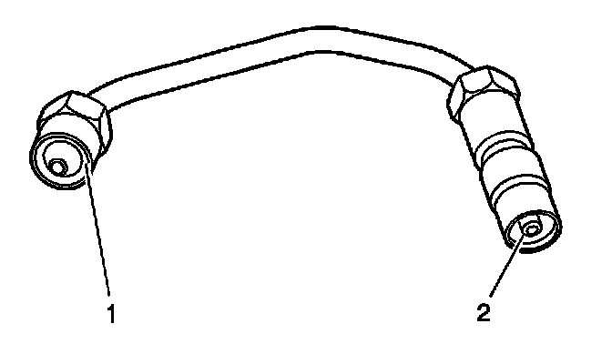 5. Inspect the fuel injector high pressure line for excessive corrosion or damage to the sealing surfaces (1, 2). Replace the line if any damage is found.