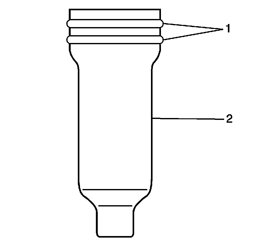 2. Lubricate and install NEW O-rings (1) onto the fuel injector sleeve (2).