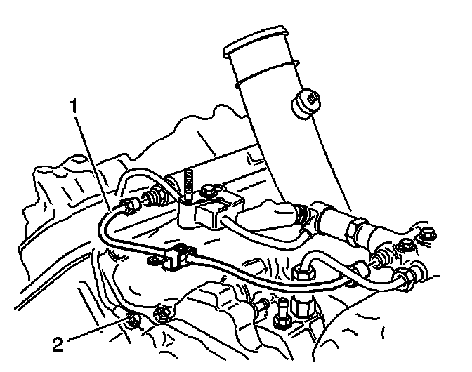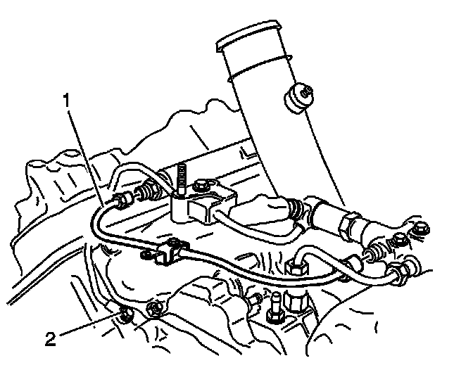 4. Connect the fuel feed rear pipe at the end of the fuel rail (1).