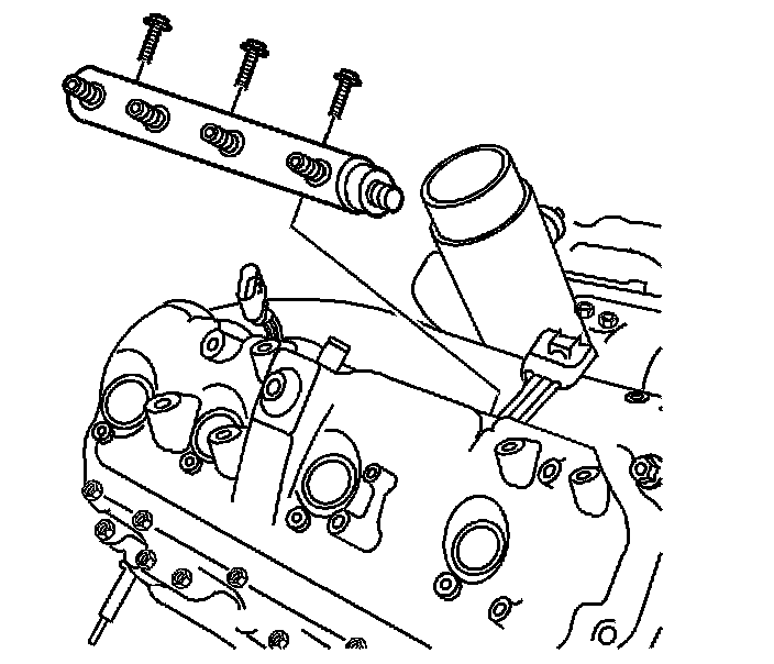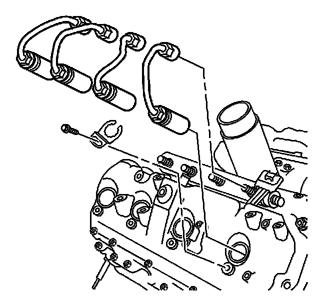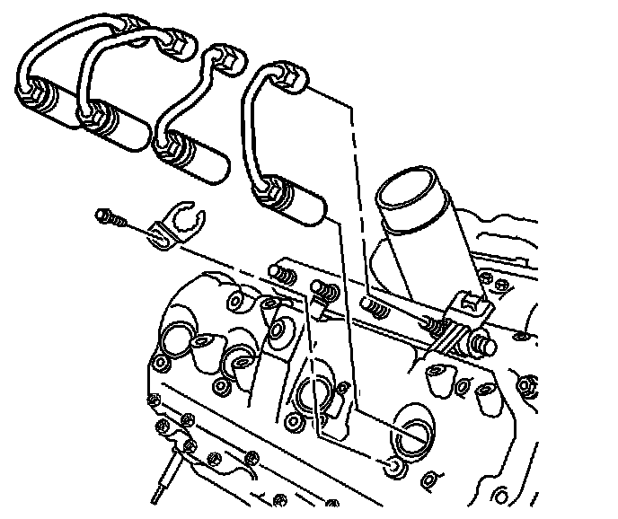 10. Remove the fuel injector feed pipe retainer bolts and retainers.