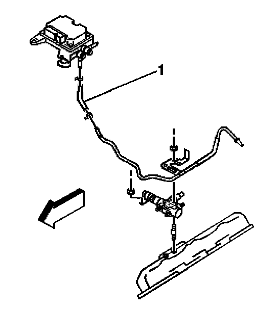 7. Remove the fuel hose (1) from fuel feed front connector pipe.