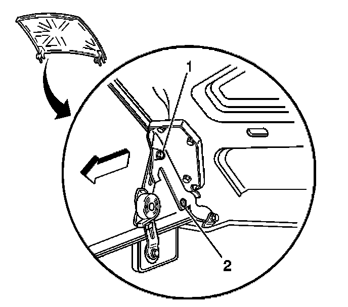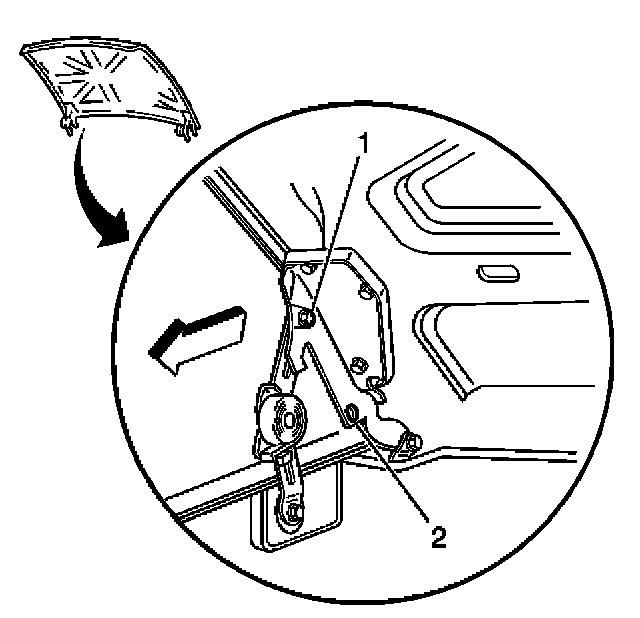 21. Position the hood in the normal operating position by moving the hood hinge bolts from the service position (2) to the normal operating position (1).