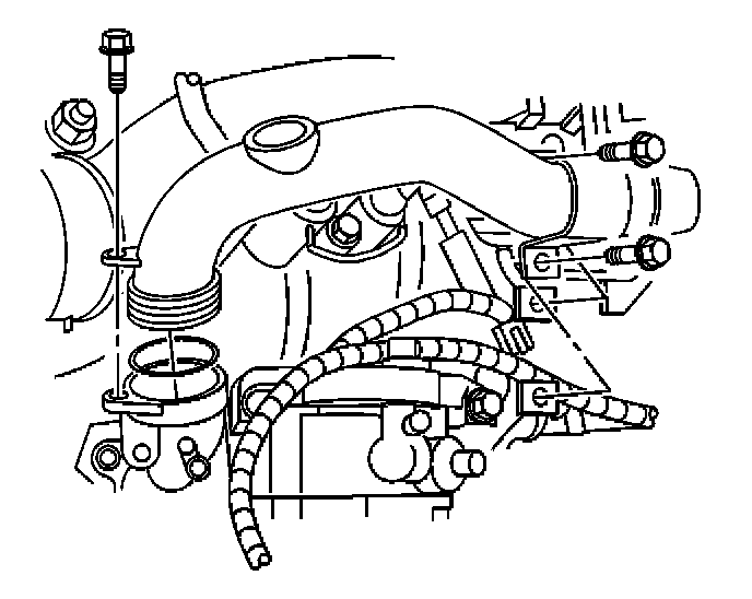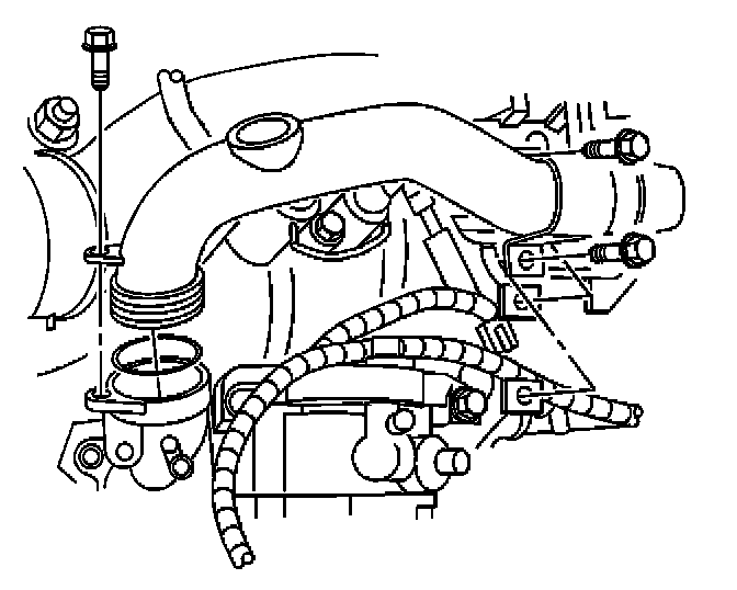 11. Install the turbocharger coolant hose and clamp to the turbocharger bypass valve.