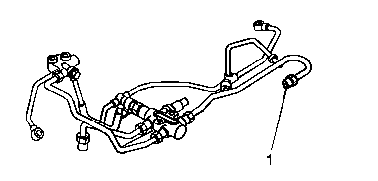 19. Disconnect the fuel pipe junction block from the fuel rail (1).