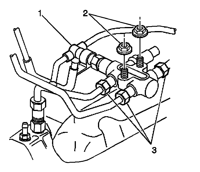 18. Disconnect the fuel pipes (3) from the fuel junction block.