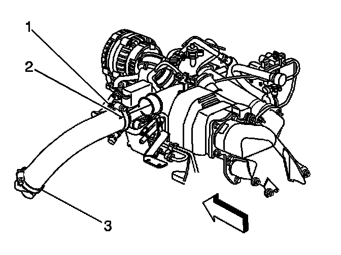 3. Loosen the outlet duct clamp at the upper intake manifold cover.